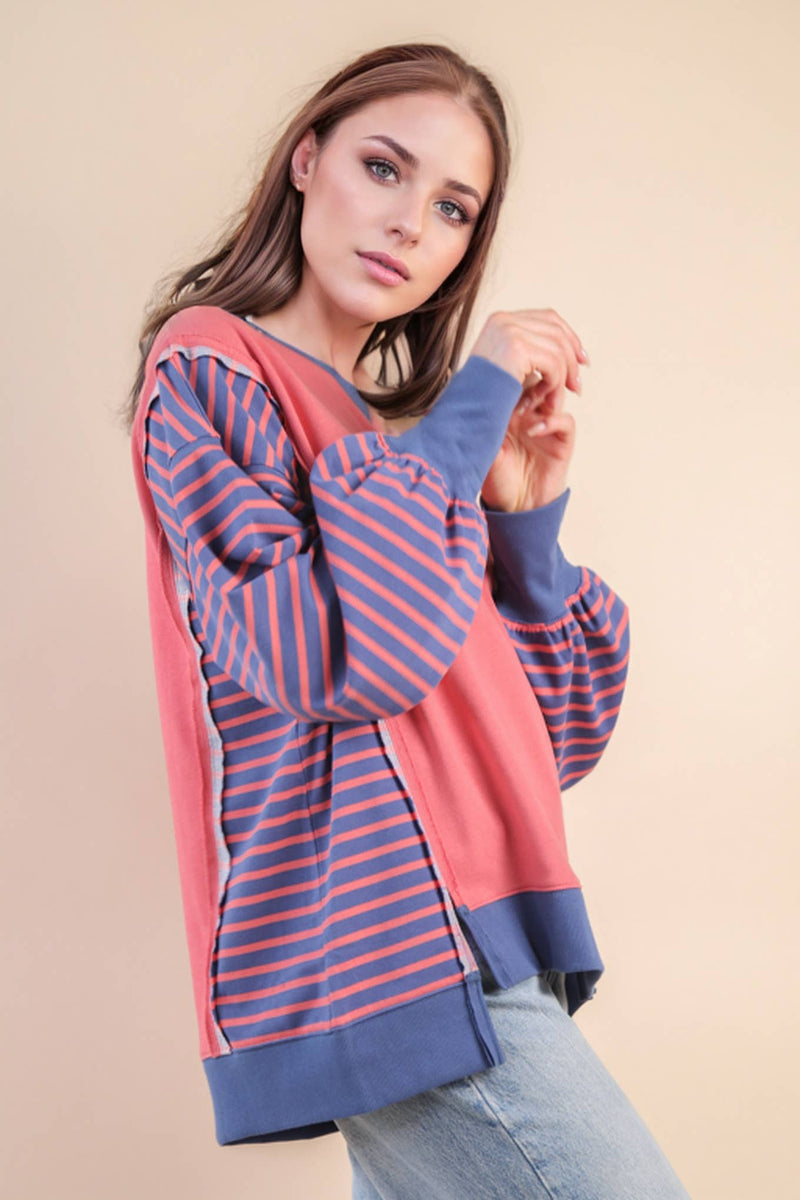 BiBi Christmas Plaid Exaggerated Shoulder Sleeves Top