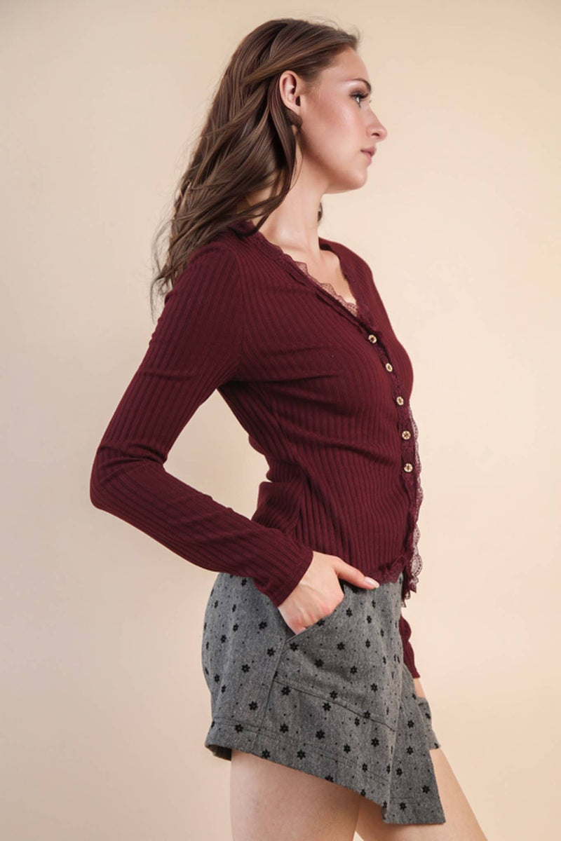 High Neck Fitted Sheer Mesh Lace Knit Top