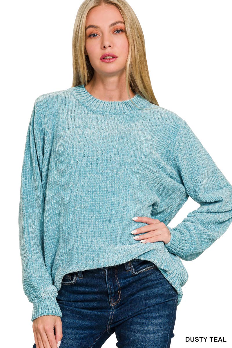 Doorbuster - Round Neck Balloon Sleeve Chenille Sweater