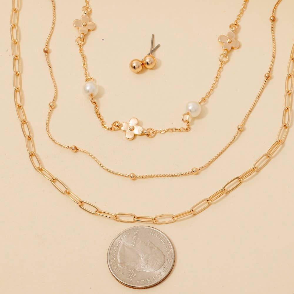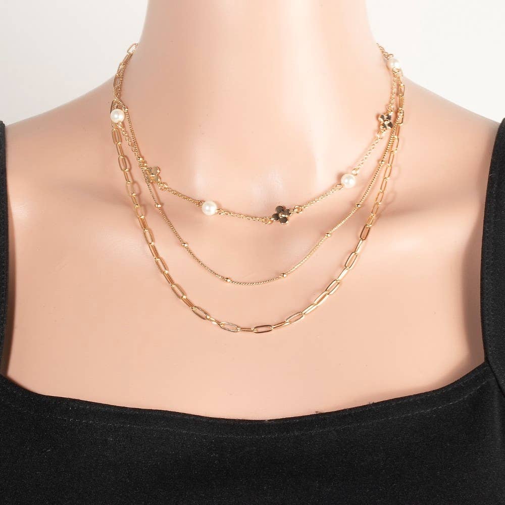 Elevate your style with something unique and daring, this chain necklace flaunts a luxurious clover and pearl station charms layered set design. This versatile chain necklace adds a touch of elegance to any outfit. This chain necklace approximately measures: Length: 14-16 Inches Extension: 3 Inches Made in China.