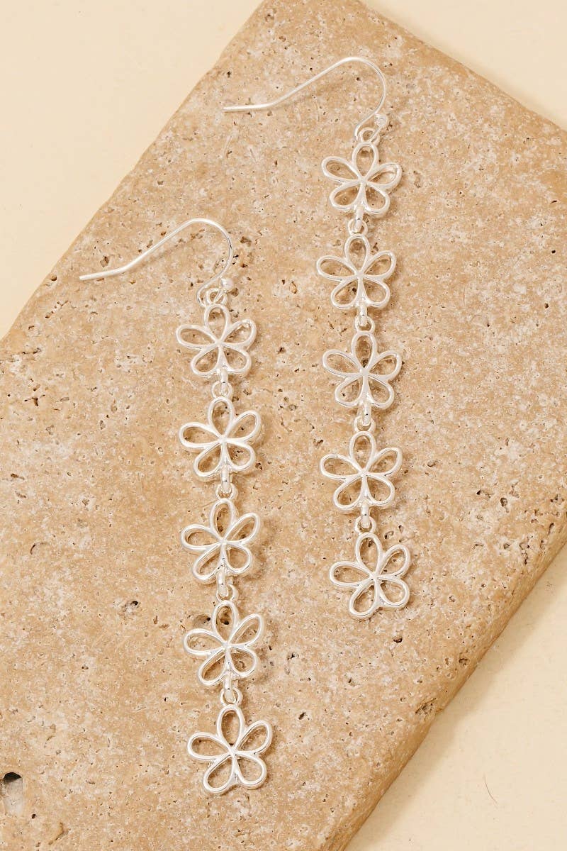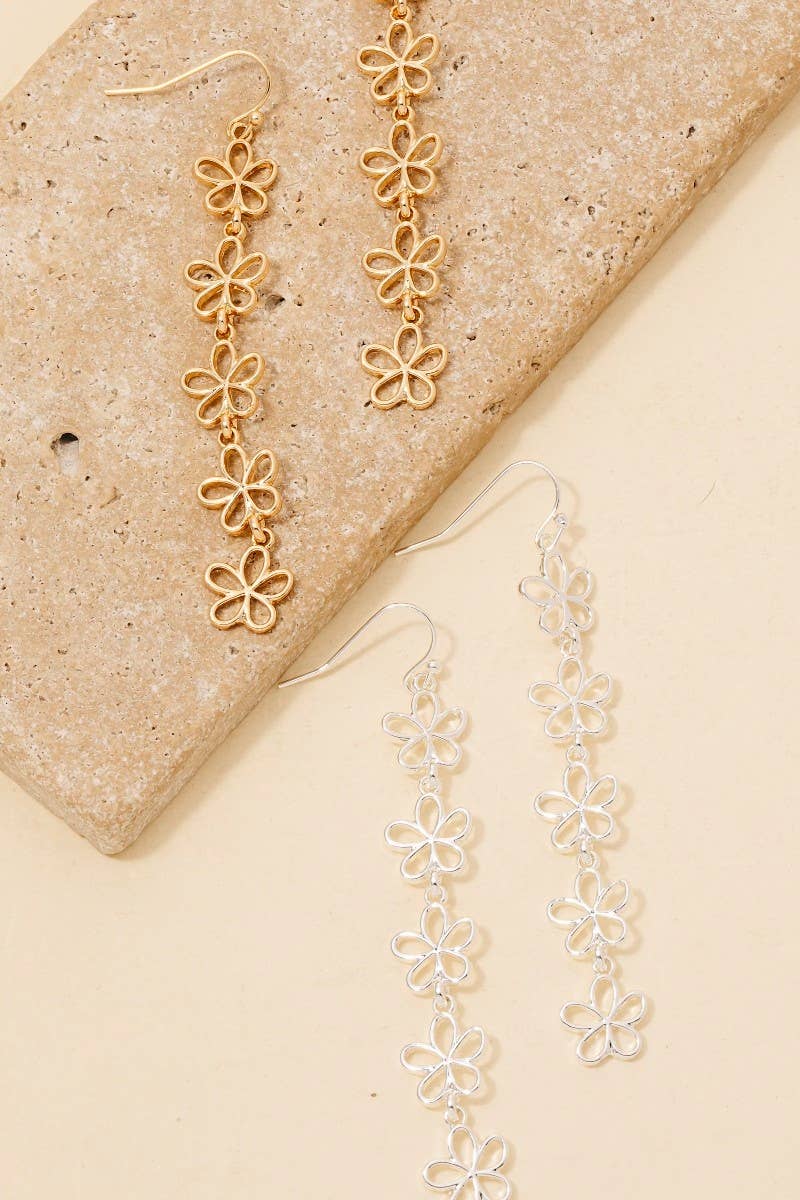 Elevate your style with something unique and daring, this pair of dangle earrings shows off a distinctive dainty metallic flower chain design. Master the art of accessorizing with this versatile pair of dangle earrings, a key element for achieving a chic and polished look.