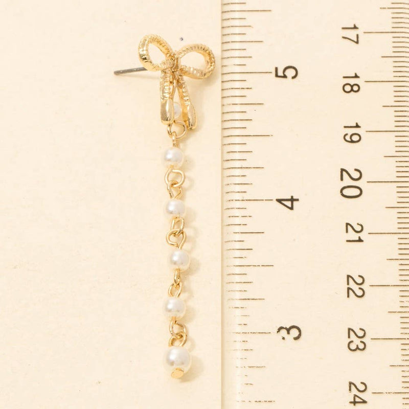 Ribbon Bow Stud And Pearl Chain Earrings