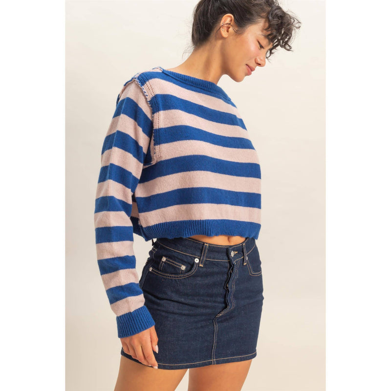 Exposed Seam Striped Oversized Sweater